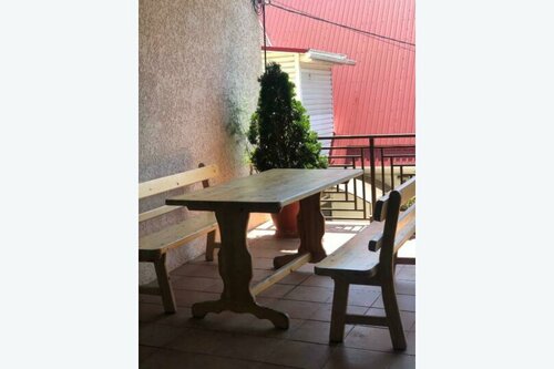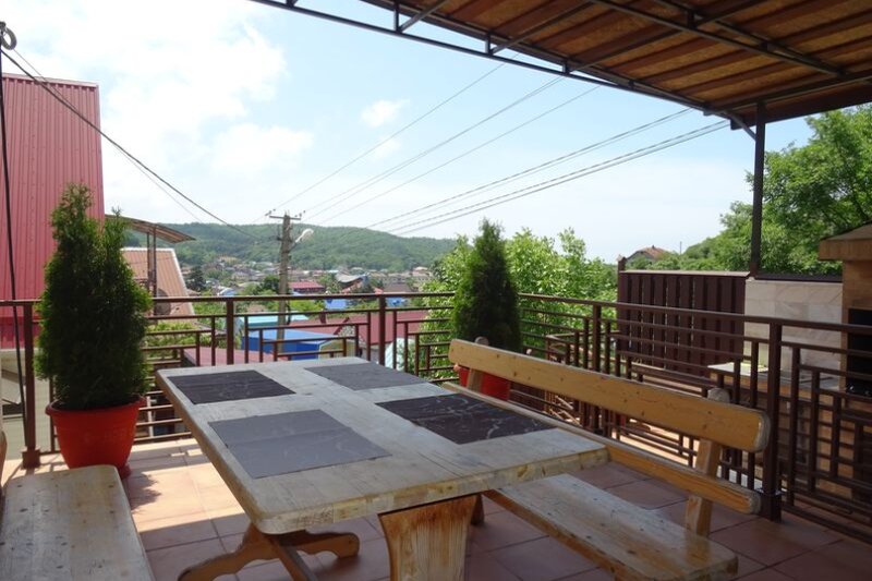 Нашли место через booking. com, списались с хозяйкой, уточнили есть ли номера в наличии на подходящие даты. Сделали предоплату. Заселились в номер. Номер оказался шикарным. Чистое пастельное белье, полотенца на каждого человека по 2 штуки. В номере своя кухня, плита, электрический чайник, сковорода, посуда на 3х человек. Также в номере холодильник, кондиционер. Ванная комната с туалетом тоже находятся в номере. За окном есть сушилка для белья. Шкаф с вешалками, тумбочки для белья также имеются в номере. Во дворе есть парковка для машин. Есть камин для приготовления шашлыка, столики на террасе. Единственный минус - это далеко от моря 2,5км. Подходит для тех, кто не хочет набрать лишний вес. Хотя можно добираться до моря на своём автомобиле. Парковки есть недалеко от моря. Мы рекомендуем этот гостевой дом тем, кто ценит удобства. На следующий год обещали открыть бассейн.
