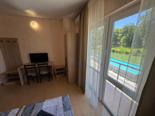 В номере чисто. Ремонт свежий. Постельное хб. Выдают по два полотенца на человека. В ванной есть ещё одно для ног. Гостиница очень удачно расположена, на берегу реки. Номера с видом на реку это большой плюс, так как открывается очень красивый вид из окон. Окна в пол, получается красивая понорамма. До пляжа минут 3-5 пешком. По дороге много точек с питанием, столовых. Вокруг сплошные гостевые дома. Магнита и Пятёрки в этом районе нет вообще, а в небольших магазинах и торговых точках цены очень завышены ( пример: пачка масла, которая в Магните стоит 200 рублей, в местных магазинах 360-380, 0.5 пива стоит, как в обычных городах литр, и так на все) Возвращаюсь к гостинице) Во всех номерах есть душ/тулет. Всё чистое, всё работает. Есть холодильник. Телевизор есть, но не работает. С телевизором не совсем понятно зачем он тогда стоит на столе и занимает много места. Лучше повесить его на стену, чтобы был удобно сидеть за столом. Есть стол, два стула, шкаф, тумбочки. Персонал приветливый. Ежедневно убирают коридор и холл. Само здание аккуратное, территория ухоженная. Вдоль речки скамьи со столиками, приятно посидеть. Есть парковка, парковочных мест много. Заехать и выехать удобно. Из минусов назвала бы конечно, как и большинство, это отсутствие чайника в номере. И ещё один минус, но это уже не гостиницы, а всего набережного района, это очень крутой спуск к нему и соответственно подъём. Причём заезд и съезд на улицу Набережную фактически с трассы, по которой все едут дальше на побережье. Но, как сказал мой муж, все заехали и все выехали до нас) Жить там никого не оставили)