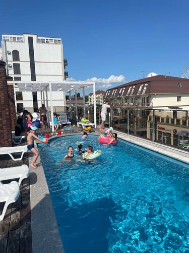 Отличный бассейн, не мелкий, без запаха хлора, с утра и до вечера на солнечной стороне. Вода чистая, прохладная. Из пожеланий только одно - добавить матрасы на шезлонги ( которых, кстати, всегда хватало всем) для еще большего комфорта.