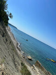 Отдыхали в августе 2024. Великолепно! Самое главное: на пляже нет людей! Иногда в прямом смысле никого нет! После Геленджика и Анапы - это просто сказка какая-то! Необитаемый остров! Даже когда "много" народа - это значит ближайшее полотенце от тебя метрах в 10-15. И никакой кукурузы и чучхелы! А вообще пляж очень длинный - больше километра, так что можно уйти подальше и там точно никого не будет. Но пляж дикий - никаких шезлонгов там нет. Зато в отеле бесплатно выдают зонтики на все время отдыха - приятно. Пляж - крупная галька. Заход в море сложноват - крупные камни, так что или почти с берега нырять в набегающую волну или специальные тапочки. Море в целом чистое, но каждый день разное: иногда абсолютно прозрачное (такое только в Египте и Крыму видел), иногда не прозрачное, но не грязное, иногда штормит. Но медуз, насекомых и бытового мусора нет. От отеля до моря 3-4 минуты медленным шагом - и ты на необитаемом острове! Красота!