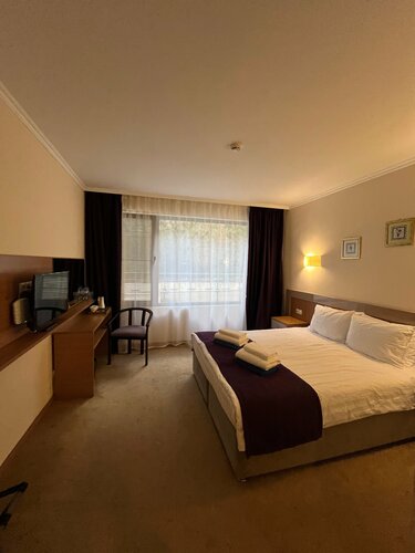 Сам отель - отлично. Мы (2+2) жили в номере Люкс. Две комнаты, кондиционер и телевизор в каждой комнате (как и должно быть, а не один кондиционер на две комнаты!) 40 кв.м. Мебели много и вся она добротная и новая. Есть небольшая кухонная зона: стол и комод (в стандарте ее кстати нет) и чайник. Двуспальная кровать и большой хороший диван (на котором реально можно спать, а не только телевизор смотреть) и дополнительное раскладное кресло. Большая ванна в ней душевая кабина - все новое. Балкон опять же. Трассу рядом почти не слышно: 1-противошумный забор, 2-окна номеров выходя в противоположную сторону. Убираются и меняют полотенца и белье когда попросишь, мы особо часто не просили, но когда просили - все делали быстро и чисто. Персонал приветливый, администратор Любовь и горничная Алина - спасибо вам большое. Люкс конечно подороже чем Стандарт, но в Стандарт нас вчетвером не пускают нигде.