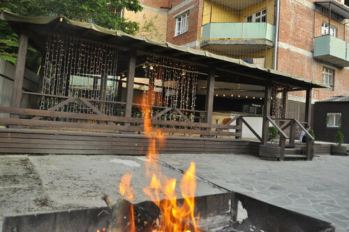 Общая кухня с плитой и посудой на первом этаже, мы готовили только завтрак, кушали на прекрасной веранде, на свежем воздухе, играли с детьми в настольные игры, которые дети обнаружили тут же.