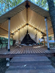 Огромная проблема с персоналом ресторана. Мы заказали одно блюдо по меню, принесли другое. Задала в чат вопрос почему не то блюдо. Прибежала женщина, начала скандалить, погружать меня в проблемы бизнеса, неблаганадежность поставщиков, что мол другим нравится, и вообще это меню старое и уже не действует. Все это представление было на повышенных тонах с претензиями. Сразу впечатление было испорчено, захотелось домой. Доверие все пропало, настроение тоже. Откуда такая враждебность к гостям я не понимаю, но никогда не вернусь в место где устраивают скандал на пустом месте. К слову, ошибку свою признали, сказали уберут это блюдо из счета, но на следующий день принесли счет, в котором это блюдо включено. Я уже не стала ничего говорить, не хотелось продолжения скандала, просто оплатила и сберегала себе нервы. Стоимость палатки на сутки 9500, т е претендуют на премиальный уровень по меркам Краснодарского края. К примеру, в пятизвездочном отеле Краснодара ( Марриотт) номер стоит от 7600 руб на двоих, но я представить не могу, чтобы кто-то там пришел и стал с тобой устраивать хамские разборки.