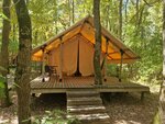2. Палатки располагаются буквально в лесу, где деревья намного выше и закрывают от солнца, поэтому температура воздуха на территории ощутимо прохладнее