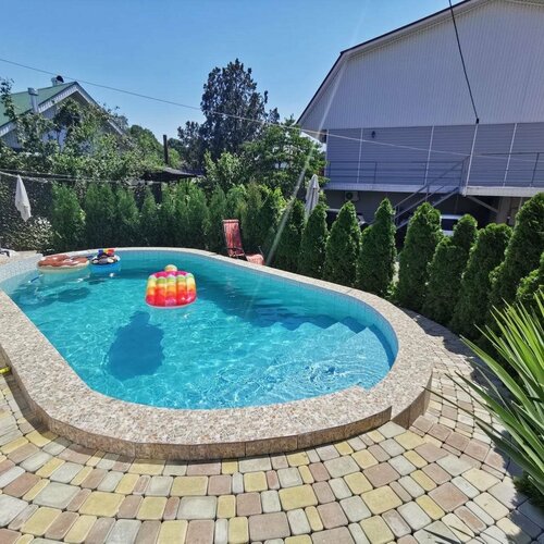 На территории есть прекрасный чистый бассейн, в котором весело резвиться не только детворе, но и взрослым)