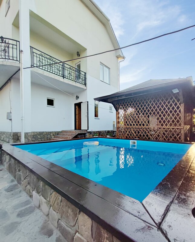 Хочется сказать огромное спасибо за прекрасную возможность, комфортно отдохнуть большой компанией. Приезжали в июле 2024, 10 взрослых и ребенок 10 лет. В доме 6 уютных комнат, 2 санузла с душевыми, просторная кухня, но мы ей не пользовались, так как проводили все время в неменее уютной беседке. Есть мангал, и раковина на улице, что очень удобно. Ну и конечно отличный, чистейший бассейн, который выручал нас, так как море было холодным. Плюс приятный бонус, 5 удобных лежаков. Вобщем спасибо за отличный отдых, обязательно вернемся снова.