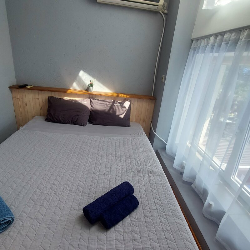 Преимущество этого отеля, что он находится возле моря. Приехали мы рано утром, просили поставить машину на стоянку, так и не поставили, хотя места были. Поставили только при заселении в 14:00. Заселились. Так как нас трое взрослых, а у нас в номере 212, были одна 1,5 кровать и 2-х спальняя, был один пододеяльник на 2-х спальней, попросили или один пододеяльник или простынь, нам отказали, ссылаясь, что у них комплекты и всё рассчитано, один человек спал без покрывала ( простыни). Мусор выносили сами, просили мусорные пакеты, за 7 дней у нас ни разу ни кто не убрался. Телевизор то работал, то не работал, 10 каналов, все информационные. Кран и смеситель старые, через них очень плохо бежала вода. Вообще, если закрыть глаза на это всё, то можно жить в этой гостинице.