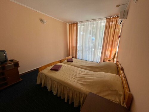 Может быть нам повезло, а может мы просто были рады выбраться на море, но в целом отдыхом в этой гостинице мы остались довольны. Да, номера не люкс, но вполне нормальные, чистые, влажность на море почти везде повышена, а тут еще и река под боком. Никаких жутких запахов от реки мы не почувствовали, сидели вечером во дворе за столиками, все было прекрасно! На противоположном берегу парк с аттракционами. Даже комары не доставали, может быть потому, что был легкий ветерок. В номерах да, комары залетают, но мы были к этому готовы, запаслись фумигаторами, спали спокойно. Холодильники работали нормально, жутких запахов мы не обнаружили. Телевизоры не работали, но нам они и не понадобились. Матрасы как повезет, у нас было несколько номеров, в целом все спали нормально. Постельное белье практически новое, полотенца разной степени изношенности. Вода горячая была в наличии, бумага туалетная тоже, мыло жидкое. В общей кухне маловато посуды, но мы привезли с собой свою походную, нам было комфортно. Парковки у гостиницы нет, но есть рядом в соседнем дворе, на сутки оставили машину за 700р. Администраторы дружелюбные, всегда готовы помочь, идут навстречу. Мы приехали до времени вселения, но нас пустили в номера, которые были готовы. Может быть немного дороговато, но у нас были особые потребности, и мы рады, что здесь нам нашлись места в такой близости к морю. Спасибо владельцам и персоналу!