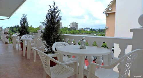 Отдыхали семьей в отеле 2 недели с сентября по октябрь , остались довольны . У нас был просторный номер на 5 человек с различными удобствами как : личная кухня , стиральная машина , большая ванная , два балкона и отдельные комнаты . Была своевременная уборка номера ,замена полотенцев и постельного белья . Также при отеле можно взять в аренду лежаки , выпить кофе на завтрак из кофе машины на общей кухне , искупаться в бассейне и отдохнуть в внутреннем дворике на качели наслаждаясь красивыми насаждениями ( я бы сказала шикарными) . Очень удобное расположение отеля , море близко , развлечения и рестораны рукой подать , а рынок , остановки в шаговой доступности . Цена - качество оправданы , единственный минус с которым мы столкнулись - это wi-Fi, да он при отеле есть , но работал лично у нас в номере очень плохо , с перебоями , что доставляло дискомфорт , тк иногда приходилось решать рабочие моменты онлайн . Наша семья рекомендовала бы посетить этот отель , планируем в следующем году вернуться ☺️ Огромная благодарность за поздний выезд , успехов и процветания ♥️
