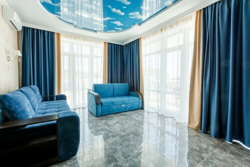 Отличный отель! Отдыхали в нем первый раз в бархатный сезон в номере 402! Отель выбирали исходя из расположения - тихая улочка (местами очень узкая, но машины проезжают) и при этом пляж рядом, ул. Ленина - главная улица с барами, кафе, магазинчиками в 50 метрах, рынок рядом, аптеки, магазин Фанагории, все очень близко! Как только вошли в сам отель, были приятно удивлены, все сделано добротно, красиво, есть лифт! Очень приветливые работницы на ресепшене, помогали по всем вопросам очень оперативно, было очень приятно общаться! Во дворе небольшой подогреваемый бассейн с лежаками на случай лени или непогоды :) тут же довольно просторная парковка. На - 1 этаже замечательная столовая, вот прям не ожидал! Очень все вкусно, на завтрак и каши, разные и омлеты и сырники, и запеканки, и блинчики, выпечка, в общем на любой вкус! Обед тоже очень разнообразный и куча разных катлет, и плов, несколько гарниров, салаты, несколько супов и очень приятные и приветливые работницы - улыбаются, шутят, все рассказывают, при этом цены очень демократичные, завтрак у нас вызодил 500-600 руб. за двоих, обед 700-800 руб за двоих, в итоге так и питались в этой столовой, в другие не ходили! Номер прекрасный, чистый, просторный, с балконом, есть сушилка, столик с креслами на балконе. В номере холодильник, пара стаканов, чайника нет, но на 1,3 этажах есть куллер, так что это не напрягало. Кондиционер есть, но нам не пригодился, спали с открытым окном, сильной жары не было! Мыло очень вкусно пахло, гели и шампуни очень приятные, хорошо мылятся, видно, что не самые дешевые!