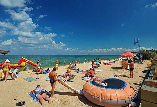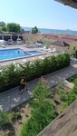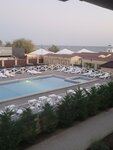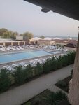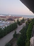 Две полуторки сдвинутые, а изголовье одно, не удобно, хотелось бы иметь возможность поставить кровати с расстоянием, матрац лежит один большой на две кровати, а сверху дополнительно на каждую кровать узкий ещё матрац, но они просто ужасные, изжившие уже себя. Простынь не возможно заправить по краям потому что она маленькая, а вместо двух пододеяльников два клочка разрезанной простыни в один слой и размер детский, даже не полуторный. Полотенца тоже старые, разноперые цвета. Wi-Fi вообще плохо ловил и обычная связь тоже в отеле, за его пределами связь ловила. Уличного освещения нет вообще, вся территория тёмная, кроме подсветки в бассейне. Территория бассейна не большая, лежаков на всех не хватало, навес сделанный для тени маленький, сам бассейн с хлоркой. Из отеля есть выход на пляж с кодовой дверью, вечером так же никак не подсвечивается. Ни одной урны под мусор нет на территории. За все время ни разу не видела, чтобы убирали территорию, подметали, мыли плитку, лежаки протирали. Так как на пляже песок с ракушками и не все люди смывают заходя на территорию, это все разносится по плитке и по бассейну. На территории есть столовая, в которую так же могут попасть и просто прохожие с улицы и зайти на территорию отеля. Цены в столовой космос, порции маленькие, супы как вода, еду не всегда подогревают. Пляж общий, грязный, мусор валяется. Море Азовское все таки на любителя, штормило все дни, медуз много синих жалящих, море пахло тухлятиной. Пляж узкий, народу тьма. Вообще станица Голубицкая не понравилась, деревня глухая, пройтись только вдоль одной пыльной дороги со всякими магазинами. Цены на еду и жильё задрали бешеные, оно того не стоит. Рядом с отелем дискотеки в барах до утра, в номере все слышно, шумно. Описала все как есть, без преувеличения. Не рекомендую данный отель, а там думайте сами, каждому своё.