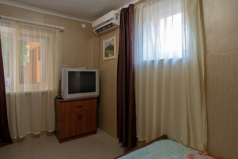 Мне не понравилось. Номер не тянет на ту сумму, которую за него просят. Ри полотенец, ни тряпки, ни туалет бумаги, ничего не дают. На больших окнах сетки есть, а в туалете, где единственная вентиляция окно, без решетки. Из-за этого в номере тьма комаров и убитых на потолке и стенах в том числе. Пол без плинтуса, обои на потолке не крашены ни разу. На кухне нет ни ложек, ни вилок, ни чашек, тарелки почти все битые. Рядом с кухней стоит незакрытое огромное мусорное ведро, возле которого стоял наш обеденный стол. Холодильник размораживали жильцы. В ванной в номере есть тазик, но нечем ни воду вытереть, ни противоскользящих ковриков. Везде плесень, даже на шторке. Старый престарый шкаф, скрипят абсолютно все двери. Ночью шкаф не открыть, в туалет не сходить, чтобы не разбудить кого-то. Как закрыть номер тоже никто не объяснил. Из плюсов чистое белье, удобная кровать, вайфай и собственный холодильник в номере. Телевизор в двухкомнатном номере один и почти не показывает. Проблемы с трансляцией. Для детей батут и все.