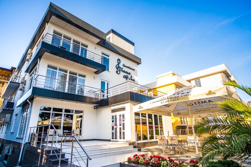 В гостевом доме «Пиано» есть бесплатный Wi-Fi, кондиционеры, телевизоры. В каждом номере — мини-кухня с чайником, микроволновой печью, холодильником и посудой. Предоставляются пляжные полотенца, халаты, вода, посуда. Возможна услуга стирки. Ресепшн работает круглосуточно, есть камера хранения. Во дворе — столики с зонтиками, место для хранения и сушки лыж и сноубордов, возможен прокат велосипедов. На территории отеля есть кафе и ресторан.