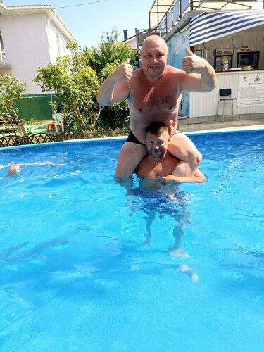 Отдыхали в первой половине июня 2017. Встреча на вокзале (трансфер), администратор Максим помог занести чемоданы (наш номер на третьем этаже в корпусе ближе к дороге). В кафе предложили вкусный обед (мы с двумя детьми - 8 и 5 лет). Номер, двор, бассейн - всё чистое и ухоженное. Да! Уборка самостоятельно, но это было написано на сайте. Кухня в номере (поэтому и выбрали Питер), было всё необходимое (посуда, мочалки, средство для мытья посуды). До моря несколько минут, проход без лестниц. Очень понравилась мойка для ног (от песка) при входе - не тащить песок в номер. Бассейн чистый и круглосуточно. Через несколько дней после приезда поставили большой каркасный - младший поплыл там самостоятельно, потому как нестрашно. Очень понравилось. Но судя по отзывам, после ухода администратора Максима всё стало разваливаться потихоньку. Хотя заметила - отрицательные отзывы всё с ужасными ошибками написаны, положительные - грамотно. Специально?