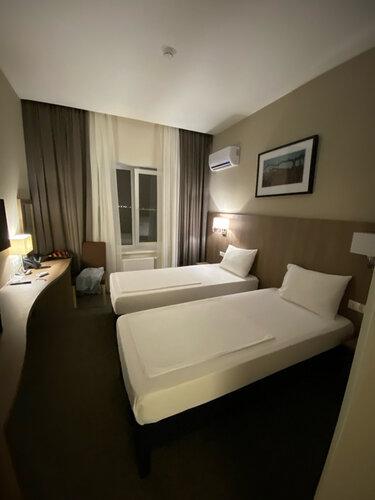 Сам по себе отель хороший. Но! Мы прибыли туда в составе 2 взрослых, 2 детей ( подростков), за ночь отдали почти 14 тысяч. Что за это получили: комнату с кондиционером и хорошей спальной кроватью, новая, уютно оборудованная. За что снизила оценку: В комнате нет ничего: ни чайника, ни воды, ни холодильника, ни тапочек, ни шампуня и геля для душа, ни даже мыла!, ни зубных щеток и пасты. Нам сказали, что есть куллер, но в куллере нет стаканчиков. В номерах только бокалы для вина! Видела, как девушка подходила с этим бакалом, наливала воду из куллера. Странный выбор наполнения номера: люди в дороге, и в этом месте не останавливаются для того, чтобы выпить горячительных напитков. Людям хочется чай, душ и спать. За 14 тысяч на семью с двумя детьми за ночь, без ужина и без чая, без шампуня- друзья, это двойка. Еда только в соседнем здании - фастфуд Ростикс, который я, например, не ем ( как и многие). Кафе в самой гостинице не работало ( сказали, что выходной). Если бы я знала все эти нюансы до оплаты, я бы поехала бы дальше.