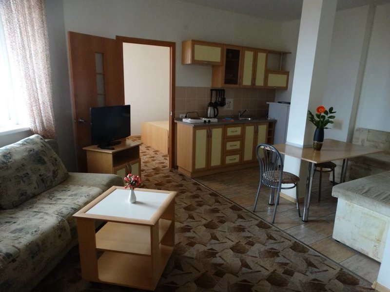 Приезжали в середине августа 2025 года всей семьей. Главные критерии были бассейн и разрешение проживать с питомцами. Место тихое и спокойное вдали от шумного ценра. Территория отеля достаточно большая и красивая. Много высажено деревьев, кустарников и цветов. Видно, что владелец вкладывает свою душу в благоустройство. Фигура осьминога возле бассейна - интересная задумка. Сам бассейн большой, рассчитан как для детей, так и для взрослых. Возле него достаточное количество удобных шезлонгов. Парковка бесплатная. Есть столовая и бар. Номер брали двухкомнатный с кухней. Два выхода на лоджию. На лождии есть стол со стульями и сушилка для белья. При заселение выяснилось, что плохо работал кондиционер. Большое спасибо администротору, вопрос был быстро решен. Кондиционер один на две спальни. Желательно конечно, чтобы в ванной комнате, хотя бы в первый день при заселении был минимальный набор средств гигиены (пакетик шампуня или геля для душа, мыло и одноразовая зубная щётка). Гостям было бы приятно, ведь едут на отдых издалека. Персонал доброжелательный и вежливый. Уборка номеров, зона барбекю и спортивная площадка платно - это удивило конечно. Замена постельного белья и полотенец раз в неделю. Само белье и полотенца уже пора бы заменить на новые, уж сильно застираны. Не хватало в номере микроволновки, утюга и стиральной машины. Ходить в другой корпус за этим не очень удобно. Свою одежду можно попросить постирать за отдельную плату. На кухне в номере есть все необходимое: холодильник, электроплита, чайник и посуда. Мебель и бытовая техника немного подустарела, но в номере чисто и уютно. Также имеется телевизор. Трансфер до моря бесплатный. Заказывать необходимо заранее. Само море далеко. Wi-Fi есть, но в дни нашего отдыха не работал по определенным причинам. Сам хозяин отеля интересен в общении - добродушный мужчина. В целом отель неплохой, впечатления от проживания хорошие.