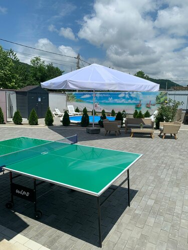 Рядом — широкий галечный пляж, оборудованный всем необходимым для отдыха. Можно заказать доставку еды. Персонал гостевого дома вежливый, создаёт домашнюю атмосферу.