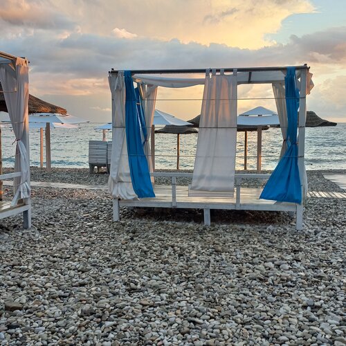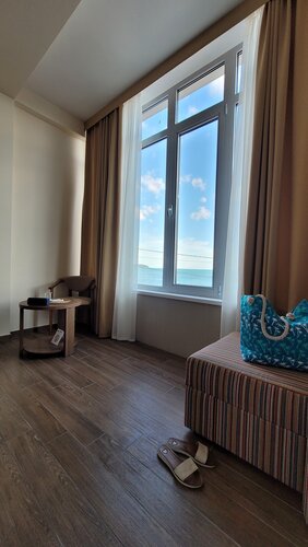 Отвратительный отель, не понимаю восторженных отзывов. Из плюсов только близость до моря действительно 20 метров. В остальном разочарование: в номере с первого дня ТАРАКАНЫ. И это совершенно возмутительно, они бегут по вентиляции с первого этажа, где располагается столовая. Номер сам маленький, балкона нет, обшарпанная мебель, изголовья кровати, душевая кабина с частой коррозией. Чайник и мини-мини холодильник в номере есть, напольная сушилка для белья. Стирка и сушка платные 700₽!!! Парковка у отеля есть, но вас туда не запустят. Выдают талон на скидку 200₽ на стоянку у кемпинга, получается за парковку уйдет 500₽ в сутки. Если машину ставить рядом, то пацарапают или собьют зеркала специально местные. Кухни какой-то общей нет, придется ходить по кафе и закусочным рядом за оверпрайз. Некоторые жильцы в номере курили и вызывалась пожарная тревога на все здание, после стали хитрее и курили в санузле, а по вытяжке это курево перемещалось в соседние номера. На мою просьбу поговорить с жильцами администратор только делала удивленный вид и оправдывала, что "может с улицы залетел дым?" Конечно смех, вид у нас выходил на горы, окна закрыты, а запах как раз распространялся от санузла. Не воспринимался разговор серьезно. Больше никогда не поеду в такой отель, отвратительный сервис и наплевательское отношение.