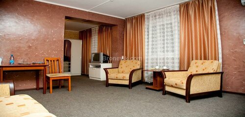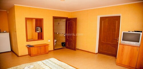 Заезжали переночевать, взяли эконом номер. В нём две кровати односпальные, стол, стул, кресло, телевизор, шкаф,постельные принадлежности, полотенца. Без удобств. Туалеты и душ на первом этаже, там же есть небольшая кухонька с холодильником, чайником, микроволновкой, если нужно. Отдельные удобства не смутили, но без кондиционера в комнате невыносимая духота и матрасы пружинные. И всё бы ничего с матрасами, но они уже продавленные(( может это нам так повезло. С собой лучше брать воду для питья точно и умыться тоже лучше взять. Вода невероятно вонючая. В целом цена/качество для ночёвки соответствуют. Персонал приветливый, администратор всё показал, объяснил, заселили быстро.