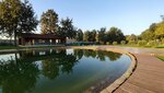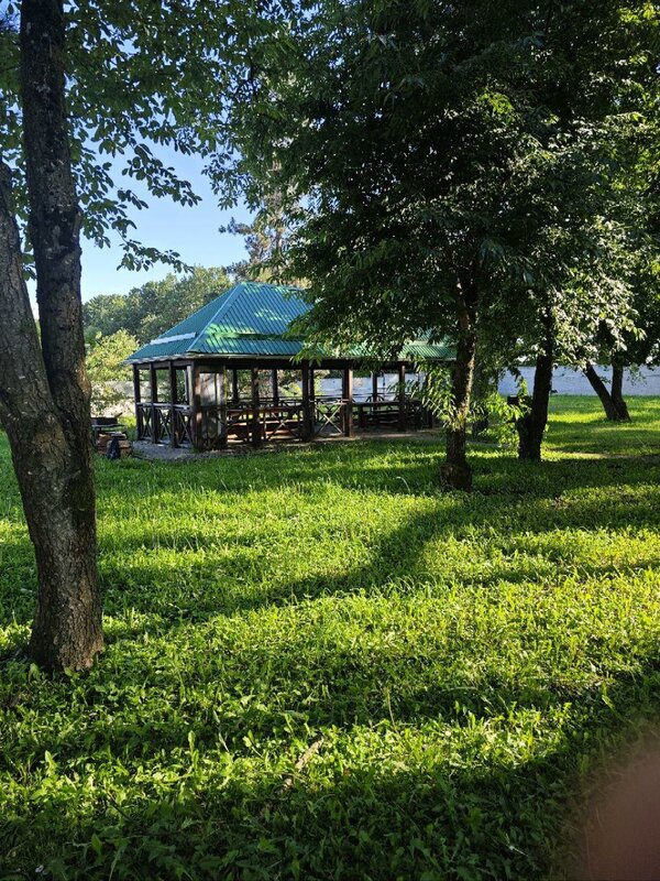 Отличное место для отдыха.Большая площадка для парковки грузовиков, парковочные места для легковых авто, места для кемперов. Отдельно можно сказать про зону отдыха : беседки с полным набором и холодильником, озеро, шезлонги, домик для отдыха, летний амфитеатр и т.д. см. Фото.Есть баня, душ, туалет, в административном здании есть гостиничные номера.
