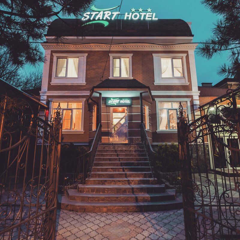 Отель «Старт» предлагает комфортное проживание. Предусмотрена парковка для автомобилей. Работает круглосуточная стойка регистрации. Возможна доставка еды и напитков в номер. Разрешено проживание с домашними животными. В номерах есть телевизор, холодильник, кондиционер, отопление, ковролин, фен и средства гигиены. Предоставляются утюг и гладильная доска, медицинская аптечка, настольные игры. Есть стиральная машина и услуги химчистки. Имеется камера хранения и площадки для барбекю. Обеспечены безопасность и комфорт: видеонаблюдение, огнетушитель, датчик дыма. Осуществляется ускоренная регистрация заезда и выезда. Рядом находятся кофейни, магазины, рынок и парк.