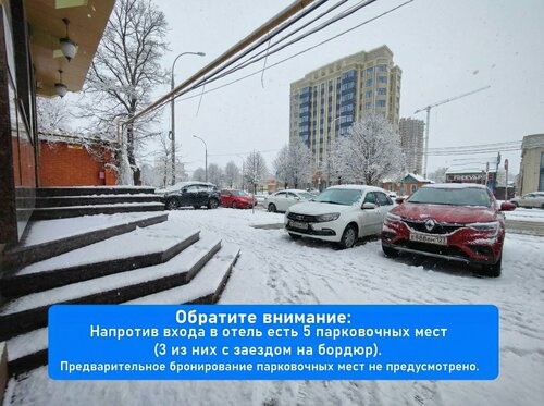 Начнем с того, что на обещанную на сайте парковку мне предложили штурмовать бордюр, что на мой взгляд не очень гостеприимно. На возражение, что колеса дорого стоят и парковаться на тротуаре запрещено ПДД мне возразили, что у них можно. Вероятно в Краснодарском крае свои ПДД. К сожалению ознакомить с ними не смогли. Второй вариант - стать на островке безопасности, что также не соответствует ПДД. Или соответствуют тем, с которыми увы не ознакомили. На просьбу вернуть деньги за бронь услышала откровенное хамство. Уголок покупателя не нашелся. Как и жалобная книга. Наверное плохо искали. Пришлось ехать в другой отель. И кстати доступность для маломобильных граждан, которую также обещали на сайте, не совсем понятно как собирались обеспечить. К счастью есть много других прекрасных отелей в Краснодаре.