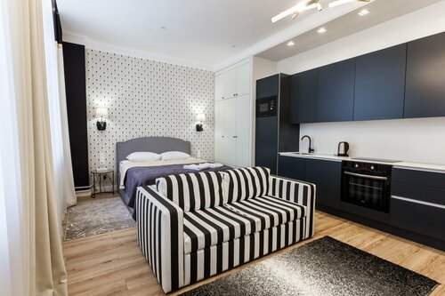 Уютный номер с хорошей кроватью, удобным расположением розеток, есть плита, стирка, утюг и в целом гладильная комната отдельно, но в целом она очень удобная. На ресепшене сотрудники вежливые и приветливые. У отеля удобное расположение.