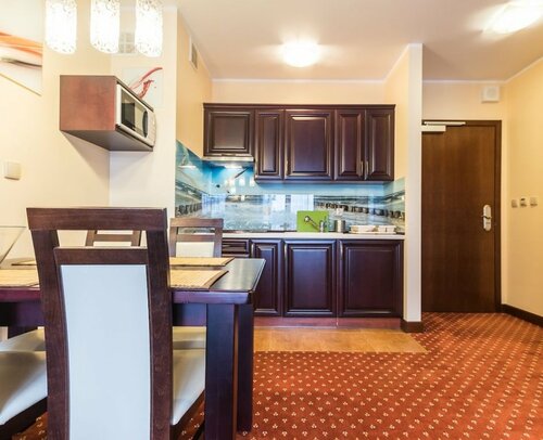 Холодильник и кухня/кухонный уголок в номере