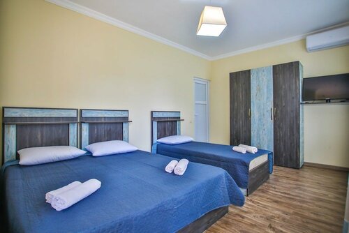 Очень гостеприимная хозяйка) комнатка маленькая, но стояло три кровати. Мы все поместились, но спать между двумя кроватями не очень удобно. Есть вай -Фай, телевизора, холодильника и фена нет( но нам и не понадобились) завтрак прикольный) на цокольном этаже дома, стены выложены из камня) печь большая красивая) на завтрак подают огурцы, помидоры, сметану, оливки, масло, сметану, хлеб, чай, кофе) вареные тёплые яйца) и ещё очень вкусное домашнее варенье и мёд) вилки и ножи 50х годов))) аутентично получилось)