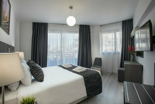 Большые апартаменты, не всегда в России есть такие однокомнатные квартиры, как здесь номер. Большая удобная кровать, балкон маленький, но уютный. На кухне есть микроволновка, плита, набор кастрюль, столовых принадлежности, стаканы, бокалы, нож, открывающая, штопор. В ванной комнате душевая кабинка, вполне вместимость, полотенца в наличии, меняли каждый день. Уборка качественная, каждый день. Хорошее расположение: до моря максимум 7 минут, недалеко Марина (где можно арендовать яхту), пляж чистый, песок мягкий, вулканический, море мелкое (до глубины идти не менее 50 метров), но для семьи с детьми очень будет хорошо. Рядом променад Фукундес, множество кафе, ресторанов на любой кошелёк. Зайдите обязательно в " Aldente", "Alexander": недорого, порции большие. Если пойти в другую сторону от моря можно найти множество маленьких кафе кипрской и греческой кухни: порции для одного просто огроменные, всегда всякие комплименты от заведения. Кофе здесь замечательный. Если вы любитель украшений, то вам тоже сюда вокруг множество ювелирных магазинов, где можно приобрести украшение на любой вкус из золота и серебра ручной работы и недорого👍👍👍
