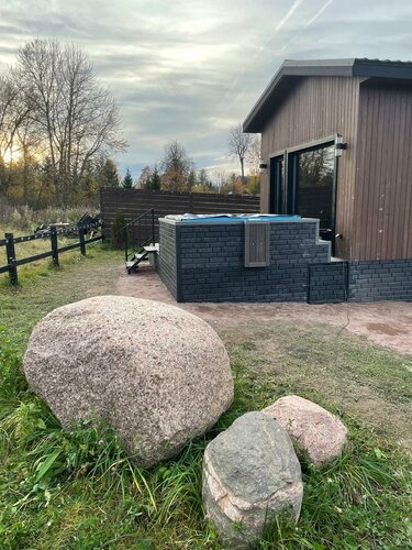 Отдыхали во втором домике 5 дней, 4 ночи, нам все очень-очень понравилось. Замечательное место, полное расслабление, вид на поле, тишина и покой. Самое главное это доброжелательный и отзывчивый администратор Рубен. Он сделал наш отдых максимально комфортным. Всегда был готов помочь, предлагал съездить в магазин если что-то надо, фильтровал воду в джакузи и добавлял при необходимости новую воду (так как от бурления вода всплескивается на улицу). Так же он довез нас САМ до жд станции по доброте душевной (мы не видели еще такого сервиса). В домике есть все необходимое для жизни. Тапочки, одноразовые зубные щетки, посуда, техника, халаты, пледы. Холодильник маленький, из-за этого переживали, но при бронировании, нам сказали что можно воспользоваться большим холодильником в доме администратора. НО!! Мы поместились в маленький холодильник, не представляю как такое возможно))) так что по этому поводу вообще не переживайте. В холодильнике было 1,8 кг мяса индейки, 1кг свинины, 1кг курицы, 3 штучки купат. (Это все на 4 дня шашлыка на мангале). Так же был батон, куриная грудка, сосиски, помидоры черри, огурцы, зелень, сыр, колбаса, майонез, кетчуп, соленые оругцы. Ну вообще все поместилось. Так же отдел небольшой где хорошо морозит, как морозилка (засунули туда мороженое). Есть доставка из пятерочки, пользовались ей, может еще кто-то доставляет. Катались на квадроцикле по полю. Домик конечно не без дефектов, но это не мешало. Все таки люди разные и тем более аренда посуточная. Видно что за домиками следят и делают все возможное чтобы люди хорошо провели время. В общем отдых удался, много чего положительного запомнилось. Шикарные котики на территории, которые создавали уютную атмосферу. Будем советовать друзьям, знакомым, и обязательно, вернемся сами. Надеюсь будет админ Рубен))) так как он является одним из главных факторов нашего отличного отдыха!! Спасибо ему огромное!