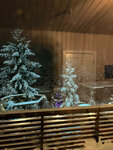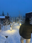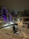 Очки ВР лежат, ценник не понравился. Алисой пользовались с удовольствием. Поселок находится в процессе застройки со всеми вытекающими: вокруг по дорогам ездили камазы, разъехаться с ними на узкой скользкой дороге - отдельное приключение. Отсюда же следует, что вид хороший только на овражек. От входа в дом и с кухни похоже на садоводство (второе фото). Домики очень близко, качель одна на оба. Что хуже, одна ветка освещения ограждения у мангальной зоны, выключатель которой находится… у соседей. Мы ложимся рано, они шашлык собрались жарить поздним вечером, наш дом к фонарям ближе, в итоге до утра свет в окно, шторы не спасали, они не блэкаут.