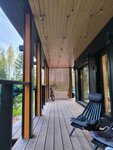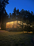 Сам домик находится уединенно, что очень здорово для нас, вам никто не помешает, но такой вариант не для тревожников конечно, хотя на ночь можно зашторить окна. Нам не страшно и мы даже не побоялись ночью немножко пройтись в лесу рядом)