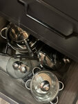 Есть хороший духовой шкаф и индукционная плитка, готовить одно удовольствие, вся необходимая посуда тоже есть. В этот раз немножко не хватило дуршлака и чистилки для овощей, но это мелочи)