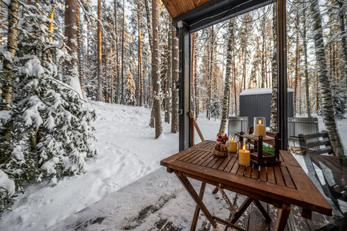 Обслуживание дома, как и сам дом топ, большой, просторный, тёплый и уютный. Хочется в таком находиться. Отдыхали с детьми 4года и 6 месяцев. Из развлекух детские площадки и локация с лошадками. Покататься не удалось, было скользко и небольшая наледь представляла опасность. На лодках естественно не катались из-за погоды и отсутствия желания. Есть телевизор, интернет работает. Были 2 дня, был день рождения жены, решили провести в дали от суеты большого города и без заморочек по приготовлению еды семьёй. Для детей возрастом 2-6 лет нужно учитывать факт скукоты, лучше взять настолки или что-то, чтобы не было хвостика, так как развлекалова особо нет. Виды прекрасные несмотря даже на туман. Огромные панорамные окна создают атмосферу пространства. Лес прекрасный. Персонал доброжелательный, отзывчивый, вежливый, внимательный. На счет еды и её наличия к сожалению не могу сказать, что вау. Видимо так совпало, что в период нашего проживания были завтрак, обед и ужин, но не полностью по меню, как заявлено на сайте. Можно выбрать и оплачивать отдельно, но не все блюда в наличии, только из того, что есть. Так как не было либо ингредиентов, либо повара, либо заготовок. Голодными не остались, но если большой компанией отдыхать, стоит учитывать тот факт, что прием пищи по расписанию только и всё. Если захочется в промежутках то либо подумать заранее и заказать больше блюд, либо терпеть до следующего приёма пищи, доставки нет, удалённо видимо невозможно. Так же особое внимание стоит уделить трансферу и возможность добраться до самой базы до и после отдыха. Как оказалось небольшая с этим проблема, опять же из-за удаленности наверно. Трансфер заявлен и можно взять(платно), но согласовать его нужно заранее сразу. Через менеджера можно вызвать местное такси до ближайшего населённого пункта, но цена относительно высокая так как частные вызовы, а не привычный сервис такси. Из Питера заказывал детский режим, обратно добирались пересадкой с местного от базы до Сапёрного, а там уже удалось вызвать Яндекс. Опять же время поиска и результат увеличены и спрос плохой в плане отклика. Нашли машину с 3го раза. Электричку и автобус не рассматривал так как дольше ехать и с маленькими детьми не совсем комфортно. Вещи лучше подумать хорошо какие брать, так как предоставляют только полотенца в доме, полотенца и тапочки в бане. Жидкое мыло, гель для душа в сан узлах где есть душ, всё. В общем и целом к посещению рекомендую с хорошей подготовкой и планированием отдыха. Летом возможно гораздо лучше и веселее из-за доступа локаций и погоды. Особенно красивы будут виды. Снял звезду только из-за не совсем понятного факта питания. Если бы знали, для праздника привезли бы с собой что-то.