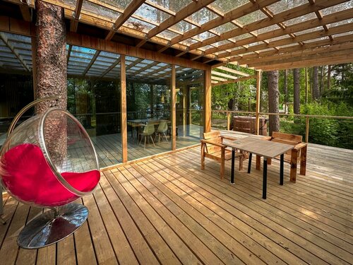 База окружена сосновым лесом на берегу озера, что создаёт уютную атмосферу. Внутренний двор с террасой и площадкой для пикника, детская площадка и фруктовый сад обеспечивают комфортный отдых. Близость пляжа и удобное расположение делают "Тихую Долину" привлекательной для туристов. Панорамный сферический дом с видом на озеро добавляет уникальности.