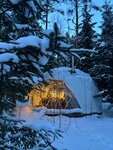 В «Vuoksa Camp» вас ждут удобные условия для отдыха: двуспальная кровать, мягкая мебель, тёплое постельное бельё и полотенца. Есть полный набор посуды, холодильник, биотуалеты в сферах и полноценная ванная комната в А-фреймах. Отопление обеспечивают камин с брикетами, тёплый пол, тепловые насосы и дополнительный слой утепления.