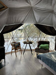 На территории есть зоны барбекю возле каждой сферы и А-фрейма. Работает Wi-Fi, все операторы сотовой связи. Можно разместиться с животными за дополнительную плату.