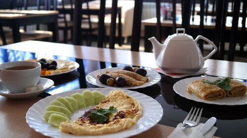 Добрый вечер! Ну что сказать, для работяги мужика всё норм, унитаз холодильник кровать горячая вода есть. Из минусов: брал один из дорогих номеров, на полу ковёр как будто не пылесосили с открытия, мусор за 3 дня никто не вынес. Кровать спать можно, но пружины постоянно заставляют переворачиваться, так как давят в спину.) Завтраки скудные, яйца сосиски чай. В общем обычная гостишка провинциального городка, под запущенная. Общее впечатление поискать получше)