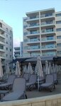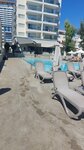 И у моря и у бассейна достаточно и шезлонгов и зонтиков. Душ у бассейна, туалеты, бар.
