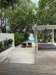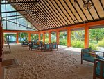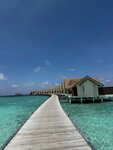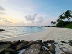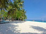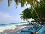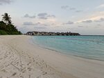 Наш домик был на некотором расстоянии от ресторана, чему лично я была рада - пройтись лишний раз. Если нет такого желания, то на дороге есть остановки, где можно подождать багги. Водители очень приветливы, всегда поздороваются и предложат довезти. Вообще очень приятный ненавязчивый, но приветливый персонал! Везде песок, на дороге, на ресепшн, в лобби, в зоне вечернего шоу и баре, кроме ресторана. Можно везде ходить босиком - это супер удовольствие. Кто-то и в ресторане ходил босиком, но вот это нам уже было не комфортно. Поэтому шлепки были с собой, а помыть ноги очень удобно около бассейна. Основной бассейн место притяжения ребятни и что здорово все покрытие вокруг из дерева, абсолютно не скользкое. Общий пляж с лежаками под пальмами совсем рядом с бассейном и баром. Лежаки всегда были, мы не занимали специально, шли на завтрак и заносили туда вещи. Весь остров - это в той или иной мере риф. На главном пляже отличный мягкий вход, мельчайших белый песок на берегу и с небольшими вкроплениями мелких кораллов в воде. Коралки, купленные по рекомендации, остались без дела. Можно просто купаться и плавать. При входе не глубоко и не мелко, как надо. А отплываешь чуть-чуть с маской и любуешься разнообразием рыбок. Другой живности нет, небольшие акулы няньки рано утром и вечером тусят около главного причала. Сами кораллы, не такие яркие, как в Египте, но рыбки яркие и раковины, сами кораллы разных форм. В некоторых местах погрызенные рыбками, а не затоптанные туристами по моим наблюдениям. Ласты и маску бесплатно можно взять на пляже на все время пребывания, если у вас самый полный пакет точно. Это лучший пляж в моей жизни. Бывала в Турции, Египте, Испании, ОАЭ. Лежишь под пальмой и наблюдаешь за летучими собаками, в народе лисами. Они очень забавны и их много. Песок действительно не нагревается, что супер удобно. Я себе и дочери брала умные купальники с рукавами и шортами, не хватило штанов - сгорели ноги сзади при снорклинге. Мазаться нужно часто и минимум от 80 spf.