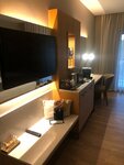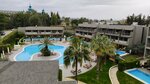 Отель вытянут вглубь. Зимой это абсолютно точно плюс - отошел от пляжа и тебя не сдувает. Море через пешеходную дорожку. Охрана стоит, бдит. По пешеходной дорожке бегают туда-сюда спортсмены и можно прогуляться до античного города (мы так и не дошли).