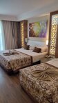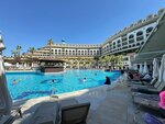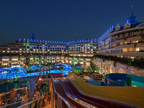 Отличный отель, только оттуда вернулись! Отдыхали втроём, я, муж, ребёнок 3.5 года, 8 ночей, 9 дней, 400 т. р. в общем тур стоил, от coral travel. Считаю, что своих денег стоит, хоть это и бюджетная пятёрка. Понравилось абсолютно всё: анимация для детей и взрослых, еда фактически без перерыва, помимо основного ресторана закусочные у бассейна, мороженое, гёзлеме (это лепешки), рестораны по меню, также ещё закусочная где амфитеатр 24/7. То же самое с барами: у бассейна с 10 до 23, лобби бар где ресепшен с 8 до 24, ещё ириш паб с 18 до 8 утра, ну и там где закуски и общий ресторан тоже есть выпивка. Больше всего понравились горки в бассейне, кобра вообще супер. Те минусы о которых пишут, типа мало говорят по-русски, плохой пляж, не соглашусь. По-русски говорят вполне хорошо, надписи почти везде дублированы на русском. Насчёт пляжа, вполне нормальный, заходить только надо осторожно, есть валуны под водой. Но вода прозрачная, всё видно. Мы тусили в основном у бассейна, там удобнее нам было с ребёнком. Так что рекомендую, думаю туда съездить ещё раз в следующем году ✌️