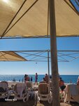 Пляж песчаный,потом немного галька и снова песок. По пляжу проводят прогулки на лошадях и верблюдах,все хорошо,но какашки за ними не убирает никто, смотрите под ноги)