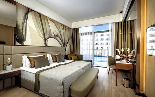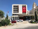 Насчёт пляжа все более-менее, но ходит злой турок, что ругается на вас,если вы сделали шаг на территорию другого отеля (ограждений нет,просто клочки газона)