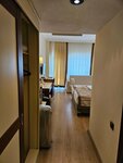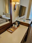 В номере все работало, правда в какой-то момент от лампы на тумбочке отвалился абажур)) через день его приклеили обратно. Половина вешалок в шкафу сломана. Блэкаут штор нет. Минибар - только вода. Кофейно-чайный сет есть. Халатов нет, тапочки есть. Шампуни-гели предоставляют, ватные палочки и диски, кажется, положили только один раз при заезде. Слышимость высокая, особенно из коридора - входные двери с огромными щелями.