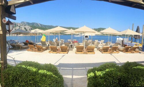 Частный пляж, шезлонги и бар на пляже