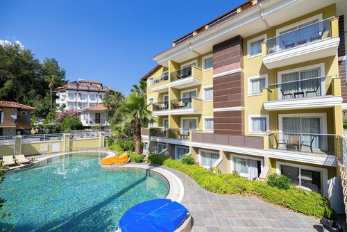 отель уставший, много чего не работает, ресепшен не решает проблемы, от слова совсем, уборка на 2, мы не проблемные, но когда пришли с моря и не оказалось полотенец от слова совсем, позвонили на ресепшен, тишина 2 часа, принесли их уже с ускорением когда сами туда пошли и привели ) еда нормальная, посредственная, но вкусно приготовленная, Изысков нет) один раз на ужин была рыба. А так много курицы и изделий из соевого мяса. пляж рядом. Лежаки правда с зонтиком стоит 500 лир на 2-если идти по променаду в сторону мармариса, то можно сторговаться на 300 лир. Как писали в отзывах, что за 150 лир возьмершь коктейль и пользуйся лежаком и зонтом весь день не работает) коктейль стоит 650 лир на одного))) но классное место все равно )) алкоголь на 4, пиво вкусное и вино. Есть также джин и водка.. это все. Но мы в номер приходили только ночевать, кондей работал, кровать удобная, вода в ванной горячая) нам этого хватало.