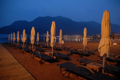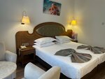 1.Приехали в десять утра и через пол часа уже заселили в номер. Номер был 312 . Много читали о постоянно орущей музыке от баров и шума от работающих кондиционерах от соседнего отеля. Были весьма довольны, что номер получили выходящим окнами во внутренний двор отеля. Да вида из номера никакого, а прямо на стену от пожарного выхода, зато ТИШИНА! А на море мы и на пляже насмотрелись. 2. Питание отличное. По вторникам был итальянский день. Креветки, мидии, рыба под разными соусами просто восторг. Но! Завтраки весьма однообразные. Десертный стол выше всяких похвал, особенно чизкейк! 3. Пляж отличный. Перешел променад и ты на пляже. Шезлонги удобные с хорошими матрасами. Не хочешь заходить в море по камушкам, иди на пирс там два хороших спуска в воду . Отдыхали в первые две недели августа, отель был полный, но и тогда на пляже всегда в любое время дня есть много свободных шезлонгов. 4. Вода. Хотите стабильное спокойное море. то вам сюда. За две недели, что здесь отдыхала море волновалось только два дня. И то - это не шторм, а просто волнение . НО! Если вы любитель поплавать пораньше, то должны понимать, что на 90 % вероятности повстречаетесь с медузами. Самих медуз не видела, но жалят ощутимо. . По утрам часов до 10:30 медуза жалятся, но не очень больно. У меня ожоги проходили уже через 30 минут, не оставляя никаких волдырей или шрамов. Кожа чистая. После 10:30 плавай спокойно, медуз нет. По температура вода тоже разная. День теплая - теплая, на другой день прохладная, но купаться можно. 5. Променад-набережная. . О - это отдельная тема. Отель расположен в таком месте бухты, что по вечерам на променаде очень комфортно находится, дует приятный бриз. Ходили на другой рай бухты по вечерам, там как рыба хватаешь воздух ртом...очень душно. Вечером многие наряжаются и гуляют вдоль моря. Хочешь заворачивай в город. Город по вечерам не спит. Музыка, бары, магазины - отличная культурная жизнь. В городе есть даже парки с фонтанчиками. 6. Территория отеля. Ее просто нет. Отель считается городским. Но это не является недостатком. Все необходимое у отеля есть. Спа-центр, лобби-бар - отличный, бассейн, отличная столовая-ресторан. Хочешь гулять , иди на набережную. 6. Контенгент. Отель 18+. Детей нет, а значит автоматически обстановка в отеле спокойная. Молодежи особо тоже я не заметили. В основном и русские и иностранные постояльцы - это люди от 30 лет. Все занимаются своими делами. Очень комфортная обстановка. Возможно, по вечерам в баре у бассейна и были тусовки, но так как наш номер был огражден от шума, то мы неудобства нам то не доставляло. МИНУСЫ: Я нашла только один минус. Когда нас привезли к отелю, то большой туристический автобус к самому отелю подъехать не смог и нас высадили на шоссе неподалеку и нам пришлось с чемоданами сначала перейти , довольно оживленную дорогу по пешеходному переходу , а потом топать до входа в отель.