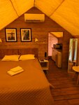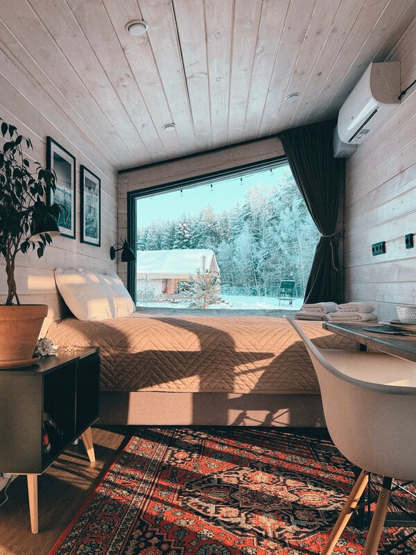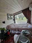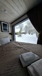В «Домики и доски» можно приехать с собакой — территория огорожена, в домиках есть место для питомца. В каждом домике есть кухня с мойкой, посудой, чайником, кофемашиной, холодильником, микроволновкой и электрической плиткой. У каждого домика своя мангальная зона. На территории есть баня, уличное джакузи и банный чан. Летом можно покататься на электрофойле, джетсерфе, сап-борде, выйти на рыбалку с причала. Зимой — покататься на лыжах, погулять по берегу. На территории есть бесплатная открытая парковка, интернет доступен везде.